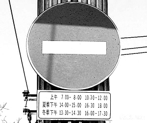 六一路上高懸的禁行牌。 ?。犛昶奋?攝)