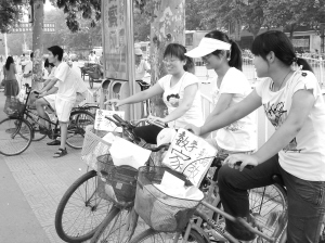 ▲ 一到暑假,就有許多大學(xué)生在周口街頭求職,希望找到一份暑期的家教工作。 ?。ㄓ浾?孫艷 攝)
