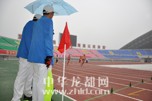 ??? 本網(wǎng)訊 11月22日下午,市二運(yùn)會(huì)田徑賽場(chǎng)上徑賽項(xiàng)目冒雨進(jìn)行。雨中,氣溫降至5攝氏度左右,觀眾也寥寥無幾。但是,我們的運(yùn)動(dòng)員和裁判仍然認(rèn)真的進(jìn)行著比賽。