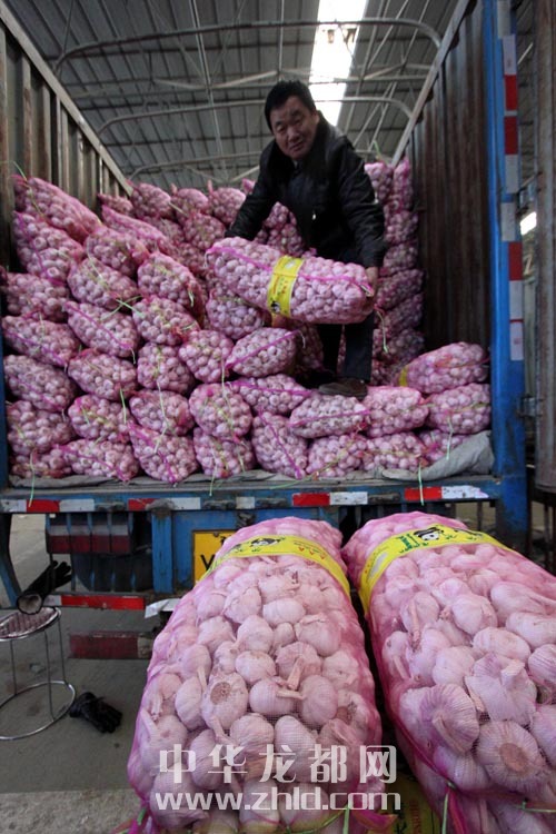 蔬菜批發(fā)商在搬運(yùn)大蒜