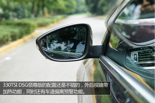 ????????測試的全新帕薩特330TSI DSG領(lǐng)尊版車型,外部配置也是不錯的,前后泊車雷達、倒車影像、外后視鏡加熱以及車道偏離預警等功能,都還是很實用的。