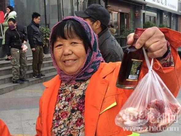 一名環(huán)衛(wèi)工人領(lǐng)到了羊肉。