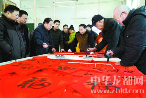 春節(jié)臨近,書法愛好者走進(jìn)鄉(xiāng)村,開展“迎新春 送春聯(lián)”活動,給父老鄉(xiāng)親送上新春祝福。王曉 攝