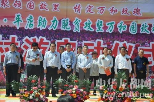 中華龍都網(wǎng)訊(周口報業(yè)全媒體記者 付永奇 通訊員 趙永昌)4月28日上午,商水縣平店鄉(xiāng)在雒莊村以“相聚頓國故里、情定萬和玫瑰”為主題舉辦“2018商水●平店助力脫貧攻堅萬和園玫瑰有約鄉(xiāng)村游啟動儀式”??h委常委、宣傳部長李本磊,縣人大常委會副主任李峰,副縣長何海中、韓秀娟,原政協(xié)副主席司新國等領導出席會議。該鄉(xiāng)1600多畝玫瑰花卉花競相綻放,花香四溢,吸引了省內外1200余名游客前來賞花、拍照、游玩,省市縣新聞媒體進行了現(xiàn)場采訪報道。