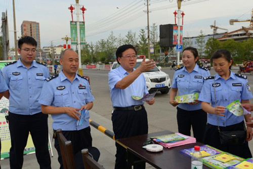 在弘道苑廣場(chǎng)的宣傳現(xiàn)場(chǎng),縣委常委、政法委書記侯自峰觀看了禁毒宣傳展板,還不時(shí)地給過往群眾交流,為他們講解“健康人生綠色無毒”的重要性,讓廣大人民群眾要提高識(shí)毒、防毒、拒毒意識(shí),積極參與禁毒工作。