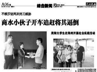 對(duì)于周口晚報(bào)的讀者朋友來說,熱心小伙陳亞輝并不算陌生——去年7月,陳亞輝曾駕駛自己的車輛逼停一位飛車搶奪項(xiàng)鏈的歹徒(2017年7月26日周口晚報(bào)圖文并茂報(bào)道),商水縣民政局局長(zhǎng)朱赫受縣領(lǐng)導(dǎo)委托,到譚莊鎮(zhèn)慰問并看望陳亞輝,后來陳亞輝被商水縣委、縣政府評(píng)為“見義勇為道德模范”。