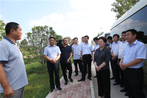 當日下午,張穎波一行在太康縣縣長李錫勇,縣委副書記、縣政法委書記王程清等領導的陪同下,先后來到河南玉柏生物科技有限公司老冢鎮(zhèn)豆丹養(yǎng)殖基地、劉寨漁光互補基地、劉寨村委大院、劉寨文化大院、劉寨扶貧車間及構樹產業(yè)扶貧基地等處考察。
