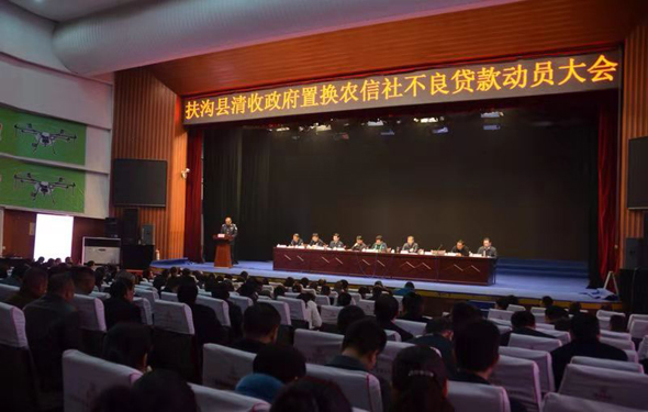 11月21日,扶溝縣召開政府置換農(nóng)信社不良貸款清收工作動(dòng)員會(huì)。會(huì)議貫徹落實(shí)省、市有關(guān)部署,動(dòng)員全縣上下統(tǒng)一思想,提高認(rèn)識(shí),細(xì)化措施,夯實(shí)責(zé)任,推動(dòng)政府置換農(nóng)信社不良貸款清收工作深入開展、取得實(shí)效。張穎波、張峰、王偉、常青、王霄靈、陳建華、李建設(shè)等縣領(lǐng)導(dǎo)出席會(huì)議??h委副書記、政法委書記張峰主持會(huì)議。