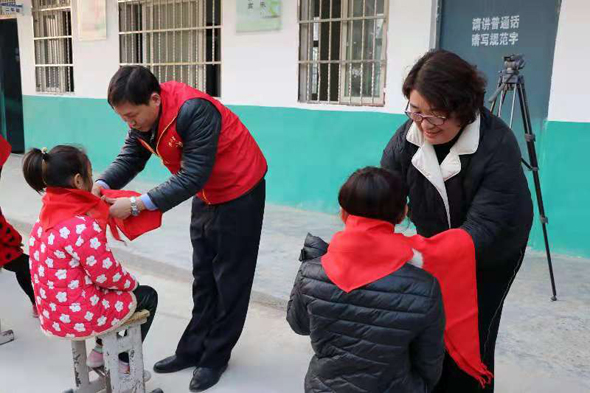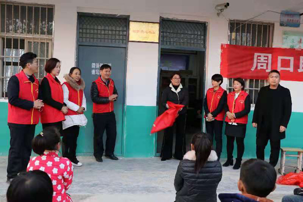 隨后,周口助夢公益團負(fù)責(zé)人王凱偉和清集鎮(zhèn)中心校校長王錦枝等人為公益團向楊莊小學(xué)捐建的“助夢愛心書屋”進行了揭牌。揭牌儀式后,王凱偉為師生們講解了交通安全知識,周口平安公司張敏團隊的志愿者們帶領(lǐng)學(xué)生們表演了勵志手語舞蹈《感恩的心》,民間網(wǎng)絡(luò)歌手韓留所為大家奉獻了《草原上升起不落的太陽》、《最美的歌唱給媽媽》等,贏得了師生們的陣陣掌聲和喝彩。