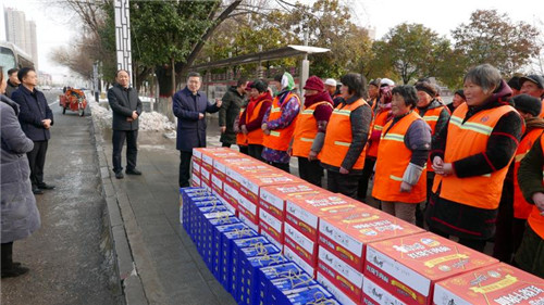 慰問(wèn)中,皇甫立新、劉國(guó)慶一行首先來(lái)到新區(qū)“三公開(kāi)”廣場(chǎng),慰問(wèn)堅(jiān)守一線的環(huán)衛(wèi)工人,向他們致以新春的祝福,并對(duì)他們?cè)谶^(guò)去一年里付出的辛勤勞動(dòng)表示衷心感謝?;矢α⑿轮赋?,一年來(lái),環(huán)衛(wèi)工人們起早貪黑、兢兢業(yè)業(yè),為改善居民生活環(huán)境和提升城市形象付出很多心血和汗水,取得了良好效果,城區(qū)環(huán)境和城市面貌有了很大改善,得到了社會(huì)各界的一致好評(píng),希望環(huán)衛(wèi)工人們?cè)诖汗?jié)期間繼續(xù)發(fā)揚(yáng)奉獻(xiàn)精神,把縣城衛(wèi)生打造的更加干凈、整潔,讓廣大市民和回家過(guò)年的群眾能深刻感受到縣城環(huán)境的新變化,過(guò)一個(gè)干凈舒適愉快的春節(jié)。
