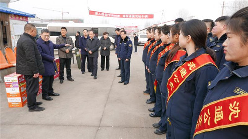 在縣公交公司,皇甫立新首先向全體干部職工致以節(jié)日的問(wèn)候,對(duì)他們一年來(lái)為全縣人民安全順利出行做出的貢獻(xiàn)表示感謝。在認(rèn)真聽(tīng)取有關(guān)負(fù)責(zé)人關(guān)于節(jié)日期間增開(kāi)班車和車次的匯報(bào)后,皇甫立新說(shuō),公交車作為公共交通運(yùn)輸體系中的重要組成部分,不僅在完善城市交通運(yùn)輸格局、方便市民出行方面發(fā)揮著重要作用,同時(shí)也是城市形象的象征。希望堅(jiān)守崗位的公交職工要繼續(xù)提供優(yōu)質(zhì)服務(wù),文明安全駕駛,為居民在春節(jié)期間走親訪友和安全出行提供方便、搞好服務(wù),展示出沈丘公交公司員工的良好素質(zhì)和良好形象。并叮囑公交公司負(fù)責(zé)人要合理安排好職工的工作和生活,為廣大一線工作人員安心工作提供堅(jiān)實(shí)的后勤保障,讓他們更加舒心愉快地服務(wù)廣大群眾。