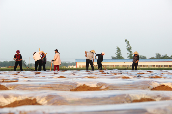 4月27日,留守婦女鐘點工在商水縣郝崗鎮(zhèn)東洄村劉雙翼的煙葉示范田中移栽、管理煙苗。郝崗鎮(zhèn)把煙葉生產(chǎn)作為扶貧產(chǎn)業(yè)來抓,在幫助種煙大戶流轉(zhuǎn)土地的同時,推廣優(yōu)質(zhì)品種栽植、節(jié)水灌溉新技術,提高煙葉品質(zhì),增加煙農(nóng)收入。