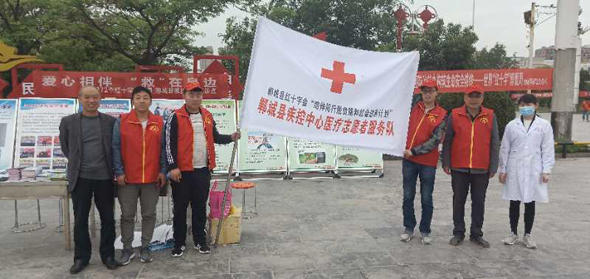 5月8日上午,按照鄲城縣衛(wèi)健委要求,縣疾控中心組織10名工作人員在縣世紀廣場開展“紅十字博愛周”咨詢義診活動。