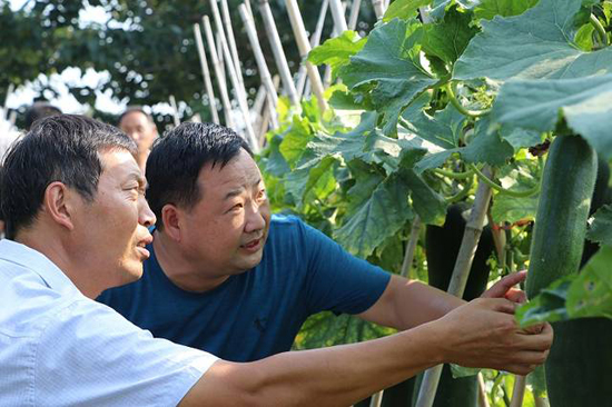 炎炎夏日,大棚下的侯俊昌汗水再次濕透,他撫摸著一串串紫紅色的葡萄說,這都是改變貧窮的“紫珍珠”啊,只要我們班子上下齊心協(xié)力,小小的葡萄也能幫我們“拔掉窮根?!辈粌H僅是葡萄產(chǎn)業(yè),村里的婦聯(lián)主任徐桂蘭也主動(dòng)帶頭創(chuàng)業(yè),承包了80畝的田地,種起了優(yōu)質(zhì)冬瓜,畝產(chǎn)上萬斤,通過駐村幫扶,提供產(chǎn)銷信息,遠(yuǎn)銷到省內(nèi)外多地。秋季種小麥、夏季種冬瓜的模式,畝產(chǎn)收益均在4000元以上。她平時(shí)鼓勵(lì)村里貧困戶到冬瓜地打工,每年帶動(dòng)近20戶貧困戶,每戶增加收益近5000元?!焙羁〔嬖V我們,“產(chǎn)業(yè)扶貧,造血扶貧在位口村已經(jīng)深深扎根,同時(shí)也吸引了很多在外務(wù)工的有識青年返鄉(xiāng)創(chuàng)業(yè),有的做起了尾毛生意、有的做起了毛刷生意?,F(xiàn)在全村興起人人講創(chuàng)業(yè),戶戶拼經(jīng)濟(jì)的良好氛圍?!?/p>