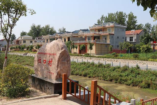 天藍(lán)水清,綠樹成蔭,九曲橋旁邊的岸上開滿了格?;?,不時(shí)有水鳥從水面掠過,這不是某個(gè)大城市的濕地公園。這是位口村的“水上公園,”如今已經(jīng)成了村里的標(biāo)志性建筑。夜幕降臨,村民們?nèi)齼蓛删墼诤舆吷⒉?、乘涼?!庇腥司幜诵∏焊裆;▋合蜿栭_,歡迎您到位口來;扶貧攻堅(jiān)結(jié)碩果,村民感恩黨關(guān)懷……