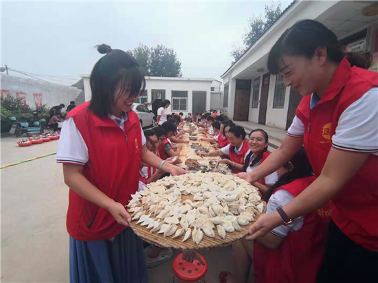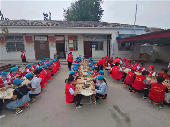 當(dāng)天上午,一場由周口市紀(jì)委監(jiān)委駐杜崗村工作隊(duì)聯(lián)合紅花鎮(zhèn)、杜崗村、周口北斗達(dá)教育集團(tuán)共同舉辦的孝老餃子宴,在該村文化廣場別開生面地拉來序幕?!按謇锼?0歲(含60歲)以上的老人今天中午都到文化廣場來吃餃子啊,市紀(jì)委和愛心企業(yè)來為我們包餃子啦……”8時(shí)剛過,杜崗村黨支部書記李長青就通過村里的大廣播每隔半小時(shí)播報(bào)一次,生怕哪位老人忘了這檔子事兒。