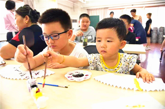 水印畫(huà)、畫(huà)扇面、穿扇衣……7月23日,北京市懷柔區(qū)泉河街道新賢家園社區(qū)開(kāi)展“DIY手工水印折扇,喜迎祖國(guó)70華誕”主題活動(dòng),40余名青少年共同學(xué)習(xí)體驗(yàn)水印折扇的文化和樂(lè)趣。