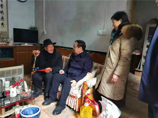 在鹿邑縣中心敬老院娛樂室內(nèi),劉國連、胡軍與老人一一握手,向老人們詢問吃的好不好、住的暖不暖、年貨全不全。同時叮囑養(yǎng)老院負責人要照顧好老人們,讓他們過上一個歡樂祥和的春節(jié)。