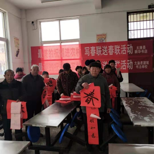 1月22日,在中原出版?zhèn)髅郊瘓F(tuán)公司開展的“最美讀書聲”最美的祝?!捌哌M(jìn)” 活動(dòng)精神指導(dǎo)下,太康縣新華書店有限公司走進(jìn)太康縣建南社區(qū)開展“書寫春天 溫暖社區(qū)”迎新春活動(dòng),為社區(qū)居民寫春聯(lián)、送春聯(lián)。