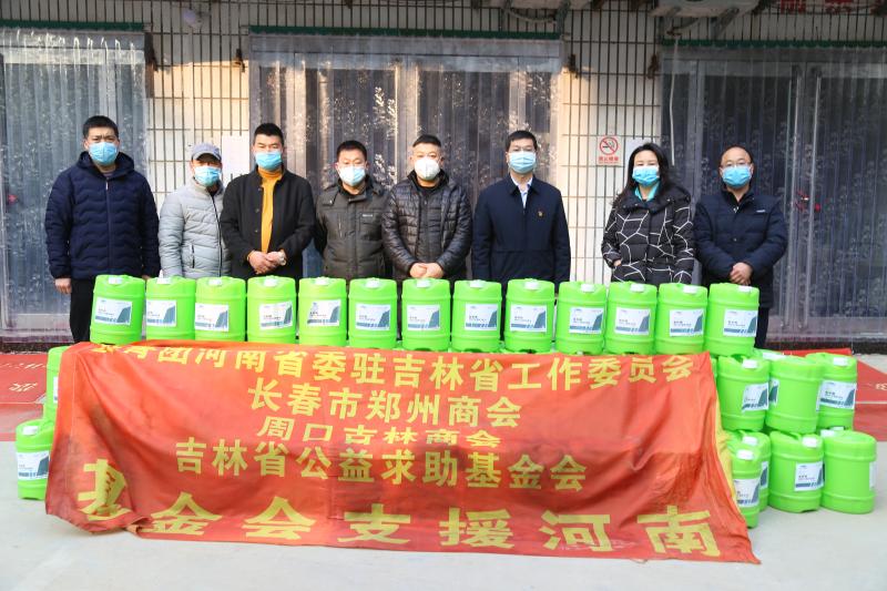 為緩解全區(qū)醫(yī)用物資緊缺的情況,吉林省公益求助基金會和周口吉林商會的代表柳崗一行人千里馳援,于2月3日上午向淮陽區(qū)捐贈可稀釋后使用的消毒液濃縮液100桶,總計1噸,用于疫情防控。