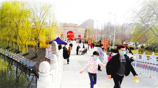 本報訊 3月10日,天氣晴朗,暖意融融,關(guān)閉一個多月的周口公園開園迎客第二天,記者在周口公園看到,游客都戴著口罩,經(jīng)登記、測溫后依次入園,園內(nèi)秩序井然。