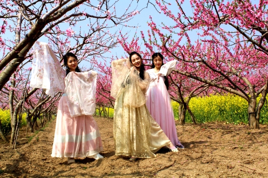 陽春三月,西華萬畝桃園花開正艷,朵朵桃花,燦若云霞。3月24日,在黃橋萬畝桃園一片桃花叢中,七位貌美如花的美女,宛若桃花仙子,翩翩起舞。一旁的幾個(gè)靚女帥男,不時(shí)按下快門,記錄下這美好的瞬間。