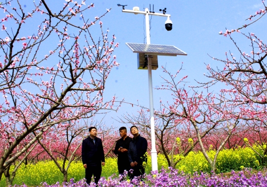 當(dāng)日,西華縣委常委、副縣長周勇,黃橋鄉(xiāng)黨委書記楊霞同河南經(jīng)貿(mào)職業(yè)學(xué)院黨委書記姚勇一起參觀了黃橋萬畝桃園,察看了安裝在潁河灣生態(tài)采栽園的“千里眼”,詢問了物聯(lián)網(wǎng)大數(shù)據(jù)采集、分析、使用情況,觀看了桃花仙子們的表演。姚勇對(duì)黃橋萬畝桃園美景贊不絕口,對(duì)黃橋萬畝桃園發(fā)展智慧農(nóng)業(yè)寄予厚望。