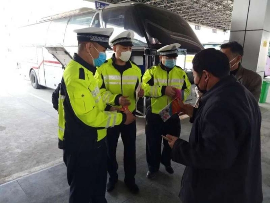 檢查中,民警向客運車輛駕駛員、乘客發(fā)放《客運企業(yè)疫情防護知識》《珍愛生命安全出行》《致駕駛員的一封信》等交通安全宣傳資料。