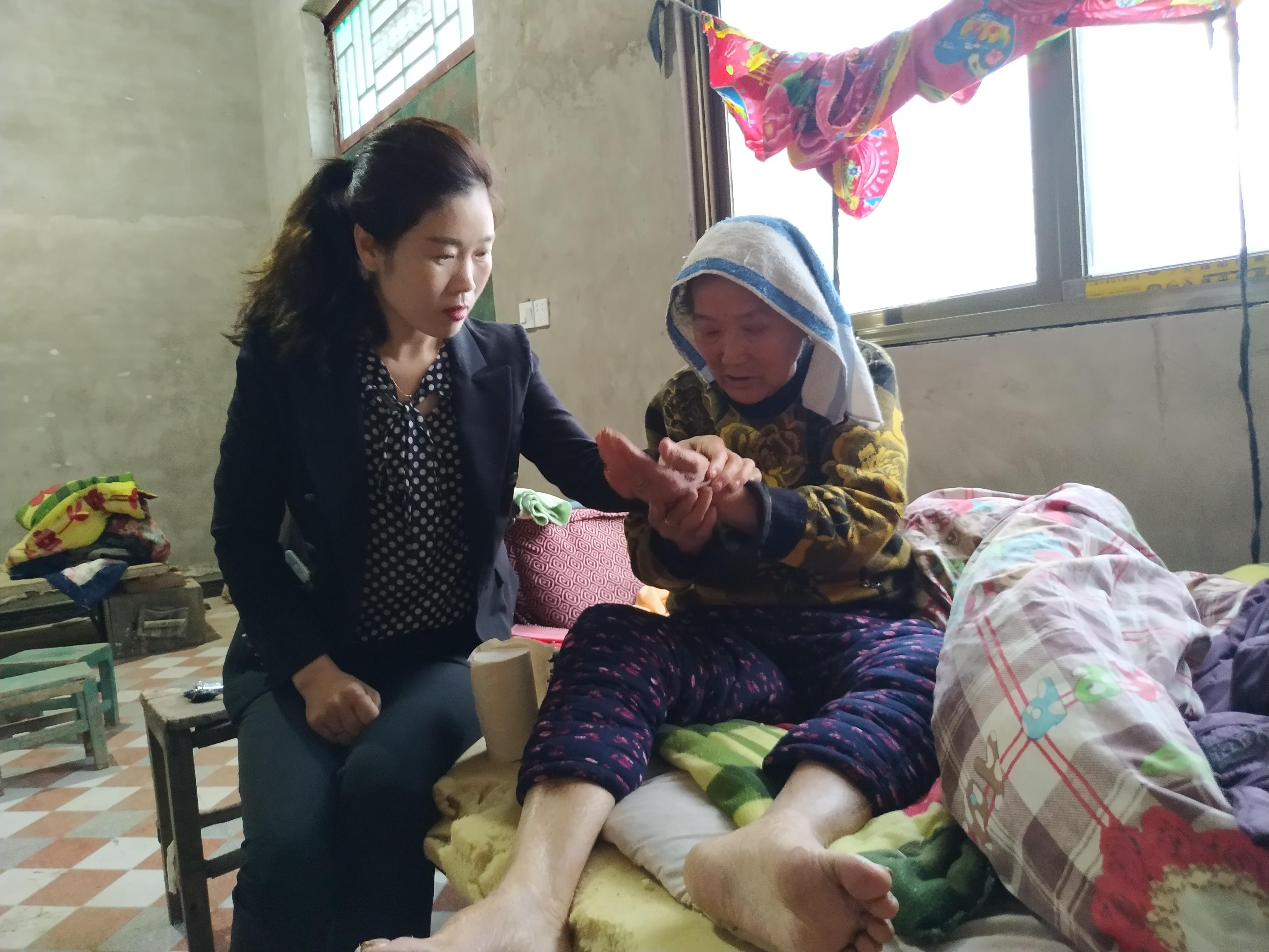 蘭秋菊自從幫扶王永蓮開始,每周都要去上三四次,把貧困戶家當成了自己的家。王永蓮兒子智力障礙,基本不能干活,靠自身動力發(fā)展很難脫貧,蘭秋菊就聯(lián)系上民政部門為王永蓮兒子辦理了殘疾證,享受殘疾人兩項補貼,全家享受低保,又利用危房改造資金修了房子,基本實現(xiàn)了“兩不愁三保障”。吃穿住問題解決了,可蘭秋菊并沒有放下心來。王永蓮兩口之家,沒有一個能好好操持家務(wù)的人。蘭秋菊每周都要堅持去王永蓮家打掃三次衛(wèi)生,每周幫他們洗一次衣服。去年冬天,王永蓮摔傷骨折,蘭秋菊就把自己五歲的女兒臨時寄養(yǎng)在親戚家里,與王永蓮已出嫁的女兒輪流守護,直到王永蓮康復(fù)出院。鄰居們都說,是親閨女也只能這樣了。王永蓮把蘭秋菊當成自己的女兒,看起來一點也不糊涂。
