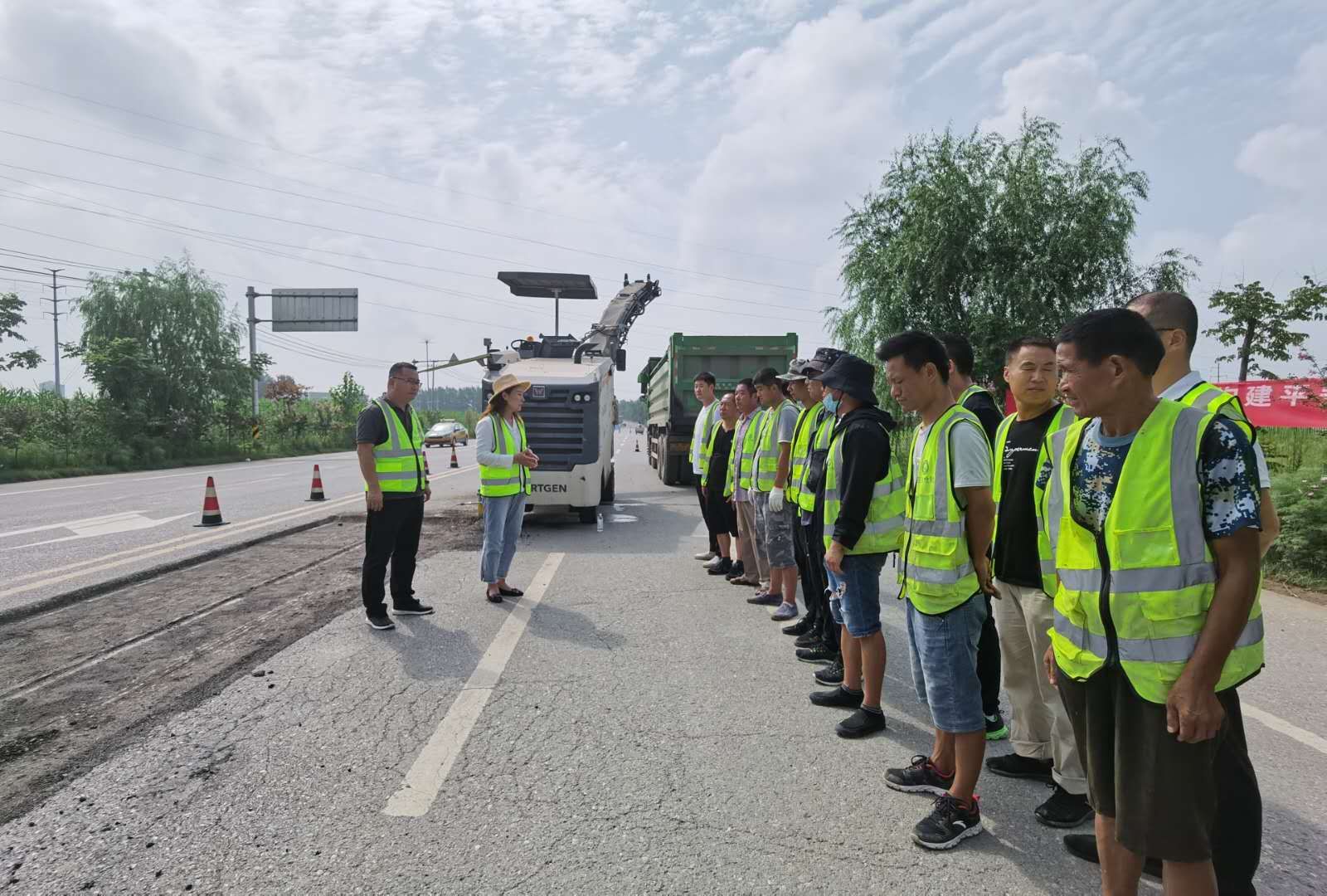接到搶險任務后,市公路橋梁應急搶險中心迅速啟動,在較短的時間內(nèi)到達現(xiàn)場進行搶險作業(yè),施工人員按照公路養(yǎng)護安全作業(yè)規(guī)程設(shè)置了作業(yè)控制區(qū),對交通進行了有效管制疏導;施工搶修人員以人機結(jié)合的方式對坑槽病害進行了填補和修整。演練期間人員著裝規(guī)范,交通警示標志、告示牌、作業(yè)機械設(shè)備齊全、完好。操作流程符合作業(yè)規(guī)范,現(xiàn)場安全文明施工措施到位,展示了良好的應急事件處置能力。此次演練參戰(zhàn)干部職工共計34人,指揮車1輛、銑刨機、攤鋪機、壓路機、抑塵機、霧炮車等機械設(shè)備參與應急演練。有效檢驗了在遇到突發(fā)事件時組織、協(xié)調(diào)、配合的快速反應能力以及熟練處置突發(fā)事件的方法、過程,進一步驗證了公路水毀病害應急預案的可執(zhí)行性,為今后突發(fā)公路安全事故應急救援積累了寶貴的實戰(zhàn)經(jīng)驗。