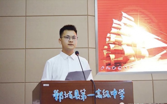 在發(fā)言環(huán)節(jié),2020屆優(yōu)秀畢業(yè)生代表、考入清華大學(xué)的宋帥,在校生代表、三(32)班學(xué)生仵家豪,家長(zhǎng)代表、考入北京大學(xué)的張玨的父親張衛(wèi)東,教師代表、2020屆高三教師靳亭分別作了發(fā)言。