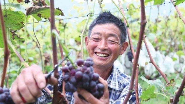 ? 9月14日,汝陽縣十八盤鄉(xiāng)斜紋村冰墨葡萄種植專業(yè)合作社社員在葡萄園里采摘葡萄。斜紋村黨支部積極引導(dǎo)村民種植冰墨葡萄130畝。