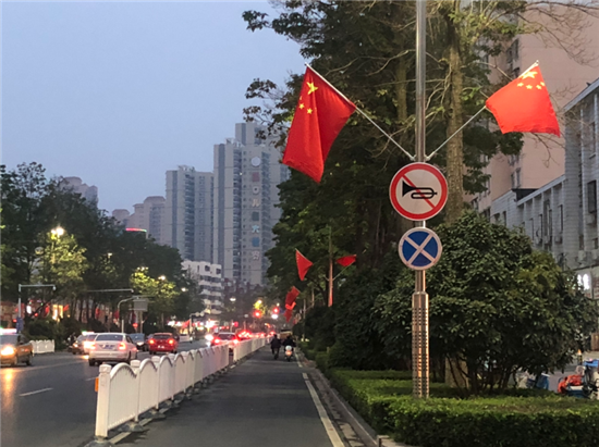 秋風(fēng)徐徐,桂花飄香,旗幟鮮艷,迎風(fēng)飄揚。國慶節(jié)臨近,市區(qū)主要干道、重要窗口區(qū)域都懸掛著國旗,一路飄“紅”,讓市民在喜慶祥和的氣氛中迎來第71個國慶節(jié)。