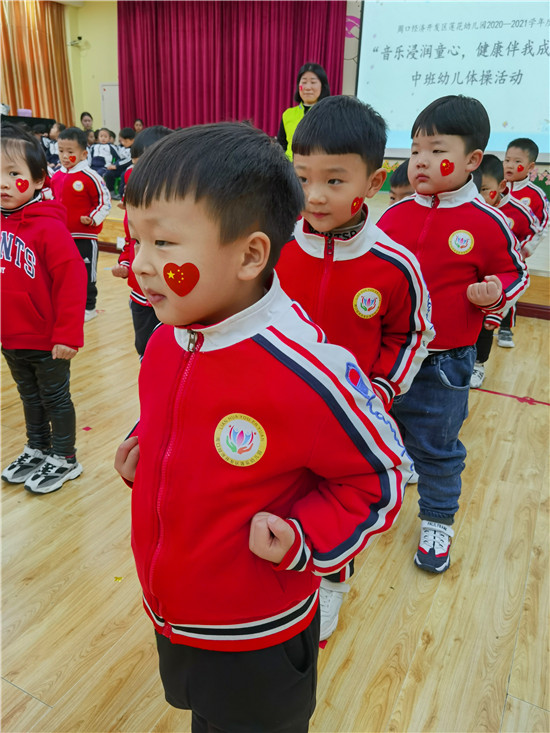 在熱情洋溢的音樂中,中班的運(yùn)動(dòng)健兒們,雄赳赳氣昂昂地入場(chǎng)了。瞧!他們個(gè)個(gè)精神抖擻,活力四射,整齊的步伐,響亮的口號(hào),無(wú)不體現(xiàn)蓮幼兒童的活潑、自信?!笆澜缯婷篮谩钡捏w操音樂響起,幼兒快樂地舞動(dòng)身體,時(shí)而裝作勇敢的海鷗,時(shí)而扮作講衛(wèi)生的小花貓,時(shí)而又成了互幫互助的企鵝?;铎`活現(xiàn)的動(dòng)物模仿操,迎來(lái)現(xiàn)場(chǎng)觀眾的熱烈掌聲。隨著一聲響亮的“嘿、哈”,幼兒扎馬步、出拳,一氣呵成。小小的身體,展現(xiàn)大大的能量。掌握中國(guó)功夫,鍛煉強(qiáng)健體魄,我們都是功夫?qū)殞?!瞧!大班幼兒在?dòng)感的音樂和老師的指揮中精神抖擻、踏著整齊的步伐入場(chǎng)了,他們靈活、有序地變換著各種隊(duì)形,像一個(gè)個(gè)快樂的小精靈。在歡快的音樂中,幼兒都十分投入,和著音樂的節(jié)奏,動(dòng)作協(xié)調(diào)、整齊有力,時(shí)而還發(fā)出“哼哈”的口令聲呢!他們開心地跳著、笑著,跳出了快樂、跳出了自信、跳出了他們對(duì)運(yùn)動(dòng)的喜愛,對(duì)健康的追求。