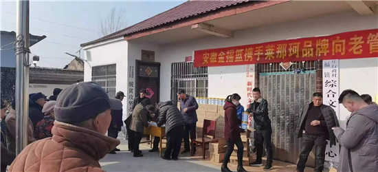 “這是在安徽金搖藍(lán)公司工作的老官莊村人王北領(lǐng)、王建立攜手萊那珂奶粉企業(yè)慰問鄉(xiāng)親們吶!”武金英老人一臉幸福。據(jù)悉,這次慰問的對(duì)象是老官莊貧困戶、60歲以上老人及困難群眾,慰問捐贈(zèng)的禮品為奶粉240桶,價(jià)值十萬(wàn)余元。同時(shí),老官莊新當(dāng)選地村黨支部書記王杰華也出資5000元,為村里的60歲以上老人及困難群眾購(gòu)買大米120袋,用行動(dòng)為老官莊老人送去節(jié)日的祝福。