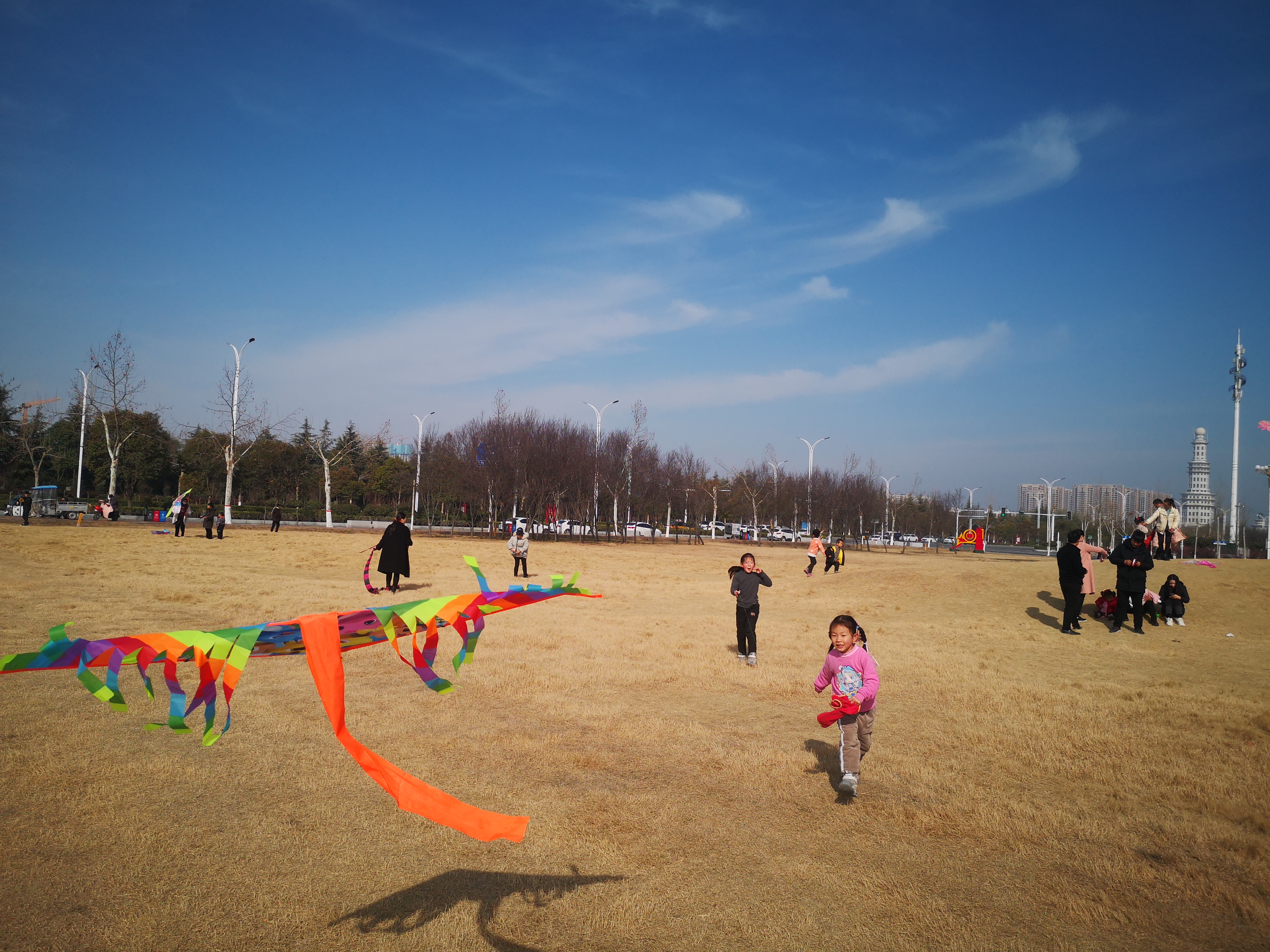 2月16日,周口大道旁邊的大草坪上,小朋友在放飛風(fēng)箏。當(dāng)日,藍天白云,春光正好,民眾樂享春節(jié)假日。