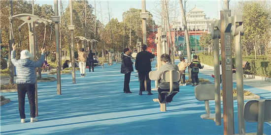 在足球場,市民有的在快走,有的在跑步,有的在拉伸,也有的家長帶著孩子玩球,一片其樂融融的景象。