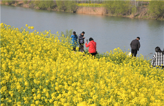 花香蝶自來。每到周末,許多游客就會來到這里,徜徉在美麗的花海中,呼吸著新鮮的空氣,遠(yuǎn)眺緩緩東去的碧水,共賞一場美麗的花事,盡享幸福生活。許多俊男靚女用他們善于發(fā)現(xiàn)美的慧眼,紛紛進(jìn)行自拍,將這份極致的美景定格在自己的相機鏡頭里。