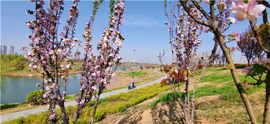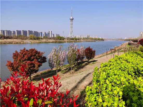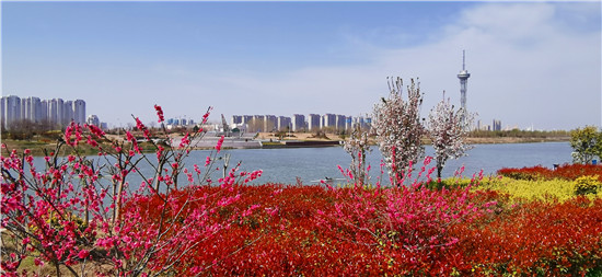 近日,在春花和藍(lán)天碧水映襯下,沙潁河兩岸桃花、海棠、石楠、櫻桃花競(jìng)相綻放,沙潁河兩岸美如畫。