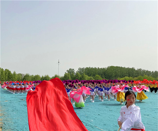 由300名女生表演的彩扇舞《盛世花開(kāi)》