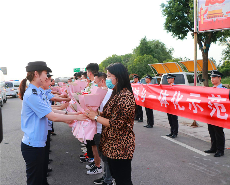 當日19時許,示范區(qū)二級調研員丁有亮,示范區(qū)公安分局黨委書記、局長何學民等同志前往迎接,歡迎勝利歸來的抓捕民警。當抓捕組車輛駛出高速路口時,現(xiàn)場響起熱烈的掌聲。丁有亮、何學民與參戰(zhàn)民警一一親切握手,對凱旋的民警表示歡迎和祝賀,民警代表將象征勝利和榮譽的鮮花獻給抓捕組民警。丁有亮表示向不辱使命、不畏艱險、勇打勝仗的參戰(zhàn)民警表示慰問,并要求他們把握戰(zhàn)機,繼續(xù)擴大戰(zhàn)果,再接再厲,再立新功。何學民指出,示范區(qū)公安分局將乘勢而上、提振士氣,縱深開展“迅雷”行動,出重拳打擊電信詐騙犯罪行為。
