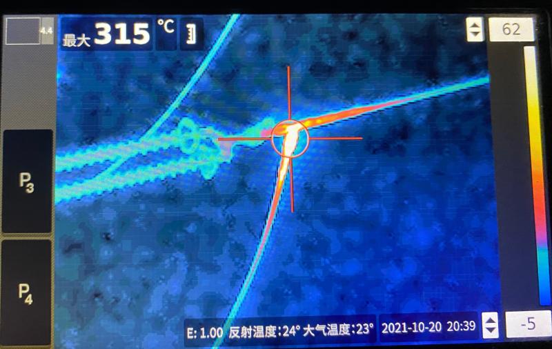 “蓮鄺線#19桿塔A相引流板連接螺栓發(fā)熱315℃,這屬緊急缺陷,需要立即處理!”10月20日晚,國(guó)網(wǎng)周口供電公司輸電運(yùn)檢中心在對(duì)110千伏蓮鄺線六級(jí)電網(wǎng)風(fēng)險(xiǎn)保電夜巡過(guò)程中,發(fā)現(xiàn)蓮鄺線#19桿塔A相引流板存在打火現(xiàn)象。