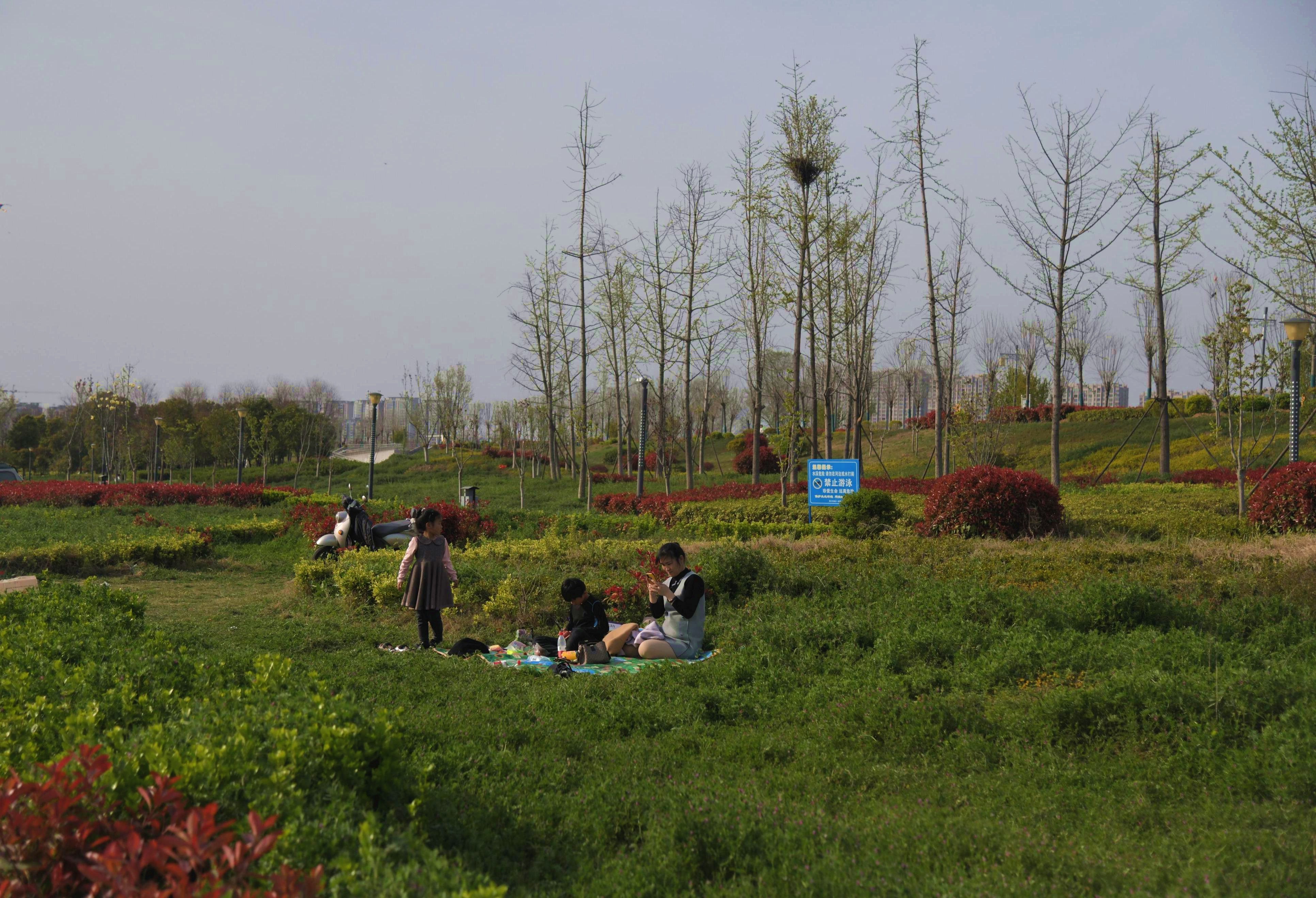 4月5日,市民在沙潁河畔休閑游玩。