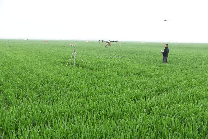 圖為商水縣高標(biāo)準(zhǔn)農(nóng)田示范區(qū)內(nèi),技術(shù)人員在操作植保無(wú)人機(jī)噴灑農(nóng)藥。