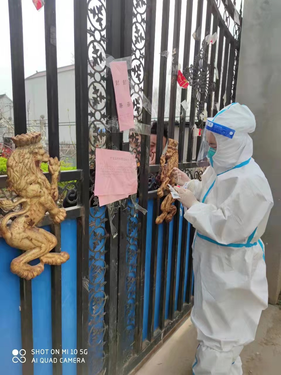 許夢蝶她們去的村分散較廣,從凌晨開始一個村挨一個村地跑下去,汗水很快濕透防護服,一般到下午2點,前來采樣的村民會逐漸變少,但是饑腸轆轆的她卻不能就餐,因為偶爾還會有村民過來采樣,如果脫下再穿防護服肯定會耽擱村民的時間,“我們本來就是為人民服務的,我們等等無所謂,不能讓老百姓來等我們”,許夢蝶當時這樣想著,然后婉拒了工作人員的就餐邀請,等沒有村民來采樣了再休息。她們吃完飯與大部隊集合的路上,突然隊長接到鄉(xiāng)長的電話說人手不夠讓回去采集封控村,她們立刻掉頭回去,沒有任何怨言,沒有任何要求。到了以后工作人員通知說這個村500多人要入戶采集,她們立即穿上防護服就開始了工作,和村干部及志愿者相互配合,拿著未集中核酸采樣的群眾名單,不停穿梭在村里的大街小巷、房前屋后、床邊炕頭進行現場核酸采樣。臨走時叮囑群眾日常防護不能大意,勤洗手、勤消毒、戴口罩,卻忘記了我們自己已經濕透的衣服還有灌鉛似的雙腿……