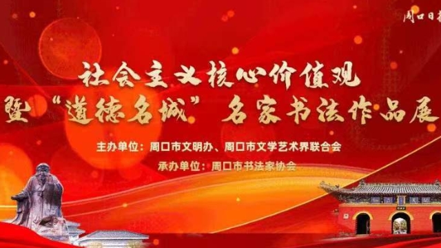 為大力弘揚(yáng)和培育社會(huì)主義核心價(jià)值觀,挖掘優(yōu)秀歷史文化資源,傳承周口地域文化特質(zhì)和精神標(biāo)識(shí),以書法的形式展示“道德名城、魅力周口”建設(shè)成果,講好周口故事,展現(xiàn)周口形象,特舉辦社會(huì)主義核心價(jià)值觀暨“道德名城”名家書法作品展。