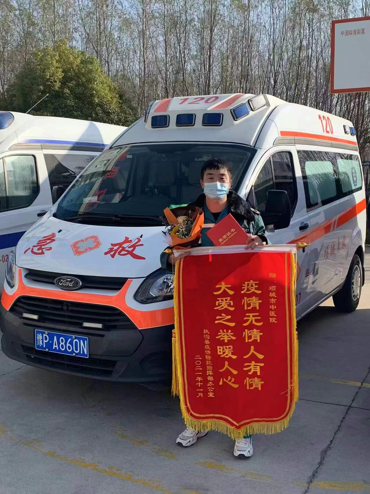 靳富壘,男,1993年人,他從2020年1月入職項(xiàng)城市中醫(yī)院救護(hù)車(chē)駕駛崗位,作為120救護(hù)車(chē)駕駛員,自新冠肺炎疫情阻擊戰(zhàn)打響以來(lái),他就始終與醫(yī)護(hù)人員一起并肩作戰(zhàn),守好疫情防控的“第一道崗”。靳富壘每天大部分時(shí)間都在車(chē)上,接送患者、進(jìn)出醫(yī)院大門(mén)都需要用消毒液對(duì)車(chē)輛內(nèi)外進(jìn)行消殺,雖然穿著防護(hù)服、戴著口罩,但每天幾十次地來(lái)回噴灑,也會(huì)對(duì)身體造成一定的影響。靳富壘平日積極樂(lè)觀、身體健壯,他說(shuō):“做好防護(hù)措施就好,我們的工作就是這樣,要說(shuō)一點(diǎn)不怕那肯定是假的,但當(dāng)時(shí)那個(gè)情景,既然我能派上用場(chǎng),我肯定要上!”