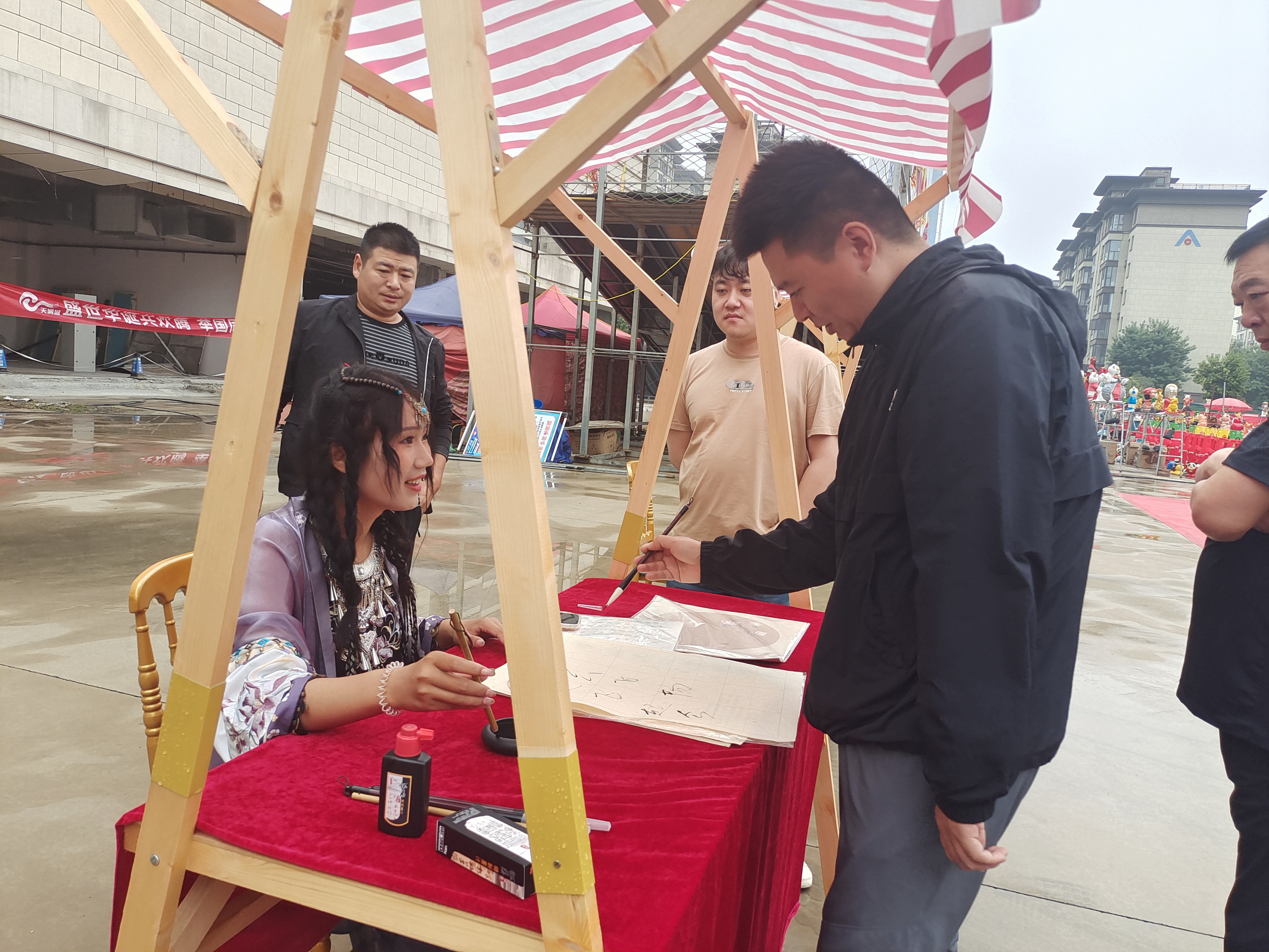 伴隨著開場舞《盛世歡歌》,“潮流雙節(jié)·中秋游園會(huì)暨國慶嘉年華”活動(dòng)啟動(dòng)儀式正式拉開帷幕。泥泥狗、剪紙、書法、繪制團(tuán)扇……現(xiàn)場工作人員有的身著少數(shù)民族服裝,有的身著漢服,用親手制作的方式展示著傳統(tǒng)非物質(zhì)文化遺產(chǎn)獨(dú)有的韻味,吸引著來往的大人小孩駐足。有的甚至親自參與制作,捏泥泥狗、寫毛筆字、畫傳統(tǒng)團(tuán)扇……現(xiàn)場歡笑不斷,大家在親自動(dòng)手的過程中充分感受著中國傳統(tǒng)節(jié)日的豐富文化內(nèi)涵。