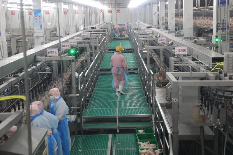 西華雙匯宰雞廠位于西華縣中都路與華安路交叉口東北角,2020年8月份開始施工建設(shè),2022年1月份建成投產(chǎn)。宰雞項(xiàng)目設(shè)計(jì)年屠宰肉雞1億只,雙班雙線生產(chǎn),車速2.5萬只/小時(shí),日宰35萬只,規(guī)劃產(chǎn)品有冰鮮白條雞、雞胸肉、雞腿肉、琵琶腿、雞翅中、雞翅根、雞爪等152個(gè)品種規(guī)格,日產(chǎn)出雞產(chǎn)品875噸,其中鮮品555噸,凍品220噸,地銷、化制和煉油產(chǎn)品100噸,年產(chǎn)出雞產(chǎn)品25萬噸。屠宰的各個(gè)環(huán)節(jié)做到全程監(jiān)控,建立起“三級(jí)生物安全防控措施”,形成從檢測(cè)到屠宰等嚴(yán)格過程的控制體系,使屠宰各環(huán)節(jié)不受到污染,實(shí)現(xiàn)高度清潔的全產(chǎn)業(yè)鏈健康屠宰。產(chǎn)品從分割、包裝、入庫到配送、市場(chǎng)銷售整個(gè)過程嚴(yán)格在0-4℃環(huán)境中進(jìn)行,保證雞肉新鮮。