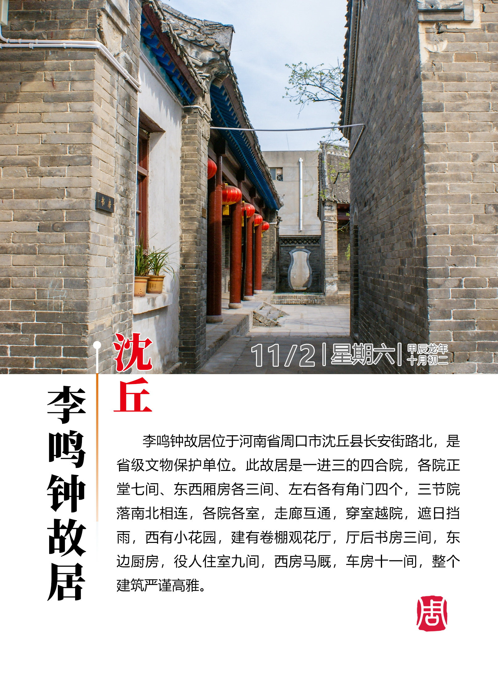【海報(bào)圖】探尋歷史文化名城——沈丘李鳴鐘故居
